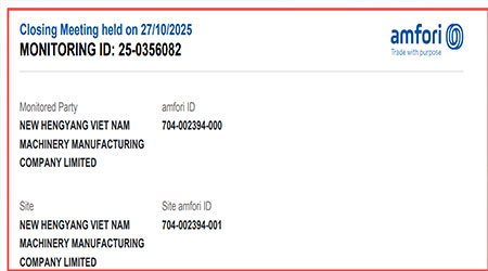 祝贺越南NEW HENGYANG VIET NAM MACHINERY MANUFACTURING COMPANY LIMITED2025年一次性成功通过SGS-BSCI验厂