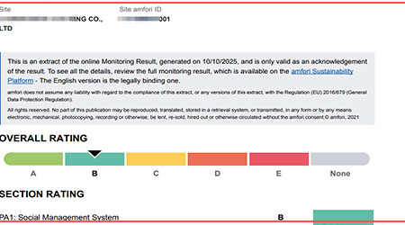 在创思维验厂之家网老师专业技术、一对一跟进耐心辅导及公司全体员工配合下,一次性顺利通过BSCI-B级,为将来公司发展奠定良好的发展基础,既开拓了市场同时也增加了消费者对公司的信赖,在这里再次祝贺柬埔寨LISHUN BOYE CLOTHING CO.,LTD 2025年成功通过BSCI-B级,同时也期待未来再次与创思维验厂之家网合作!